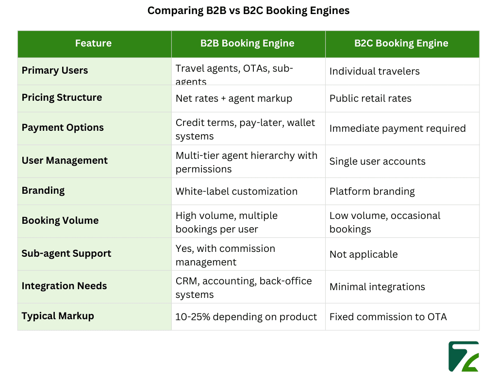 Unlike B2C (business-to-consumer) booking software in which individual travelers make direct purchases, B2Bs focus their attentions on business-to-business transactions with wholesale prices, an enterprise-wide agent log-in and ability for multilevel distribution.