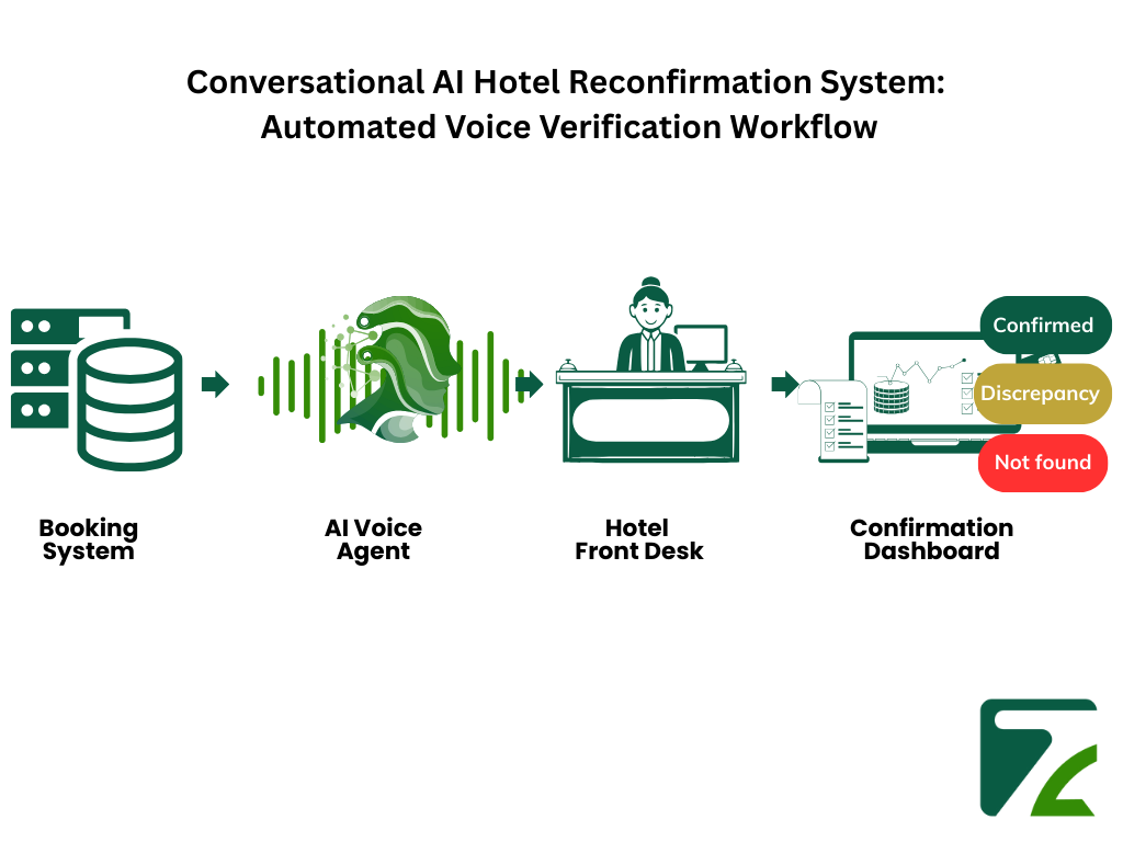 Conversational AI automates hotel booking reconfirmation by calling or messaging hotels using human-like conversations, reducing manual work, errors, and operational costs for travel agencies.